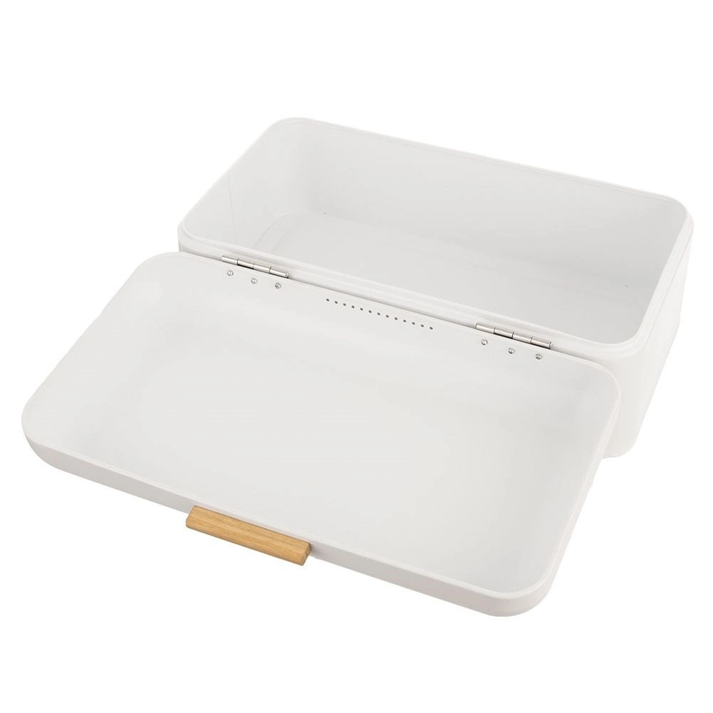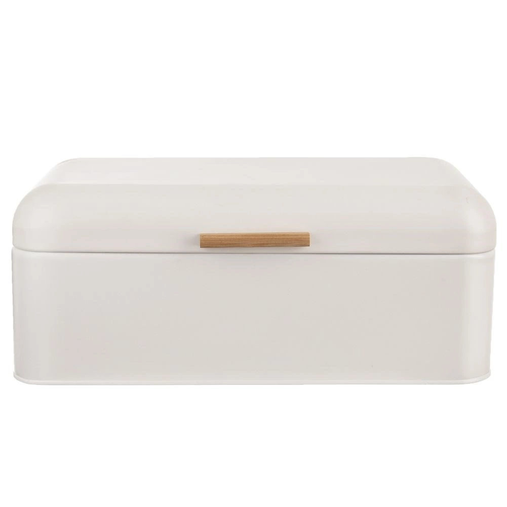 Cutia de pâine metalică WHITELINE, în culoare albă, este un accesoriu stilat și funcțional pentru orice bucătărie. Datorită construcției solide din metal și finisajului de calitate, pâinea și produsele de panificație rămân mai mult timp pufoase și crocante. Capacul pe balamale se deschide de sus cu ajutorul unui mâner confortabil din bambus, facilitând utilizarea zilnică.