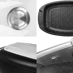 Stratul dublu din granit permite o gătire mai sănătoasă cu minimum de grăsime, eliberarea ușoară a preparatelor și curățare facilă.