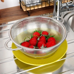 Detaliile bine gândite, precum cele două mânere robuste și picioarele stabile, permit o manipulare sigură și așezarea comodă în alte recipiente. Strecurătoarea poate fi spălată fără griji în mașina de spălat vase, economisind timp și efort.