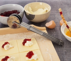 Tăietorul tip foarfecă triplu din oțel inoxidabil este un ajutor de încredere pentru coacere acasă și profesională. Trei discuri netede cu o singură muchie cu diametrul de 5,5 cm asigură tăieturi curate fără ruperea și lipirea aluatului. Mânerul lung oferă o prindere sigură și ghidare confortabilă.