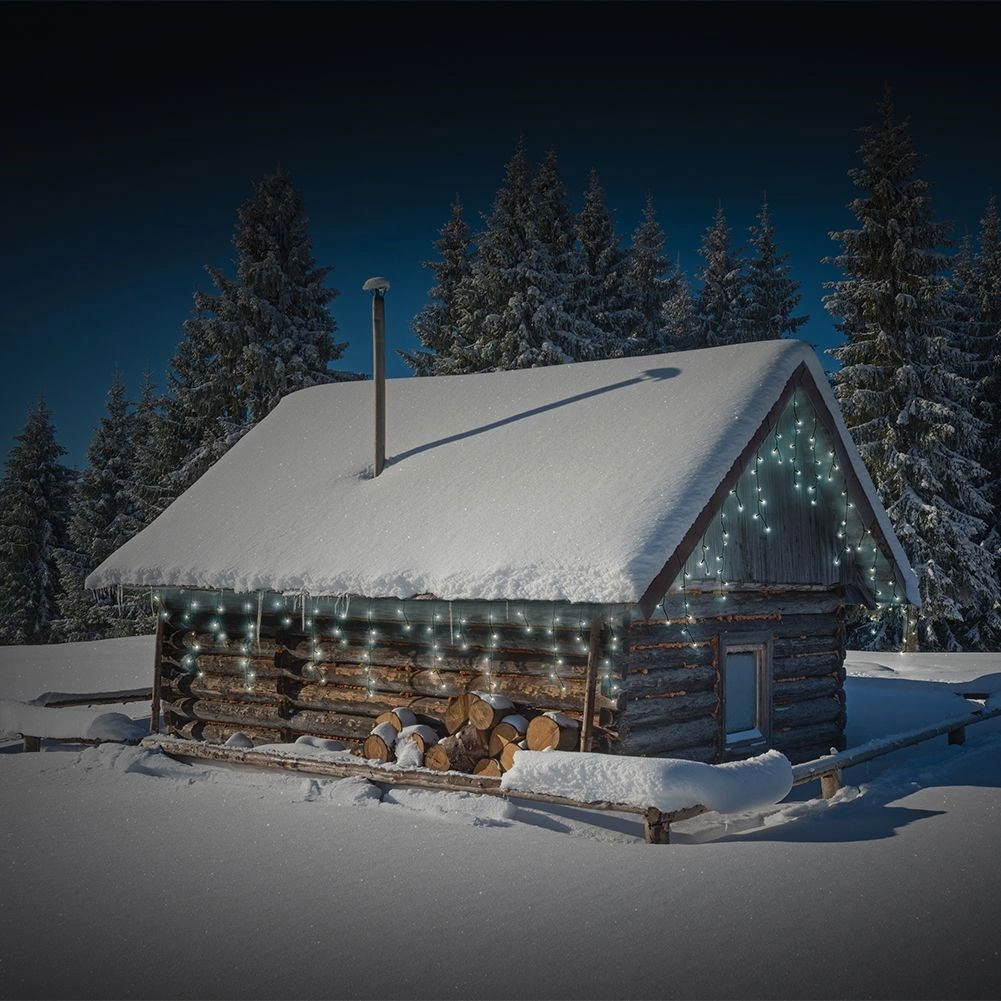 Creați o atmosferă festivă magică cu o cortină luminoasă de calitate, lungime 5,85 m și înălțime 52 cm. 180 de LED-uri cu lumină alb rece oferă un efect luminos și totodată eficient energetic, ideală pentru fațade, pergole, balustrade și interior.