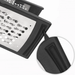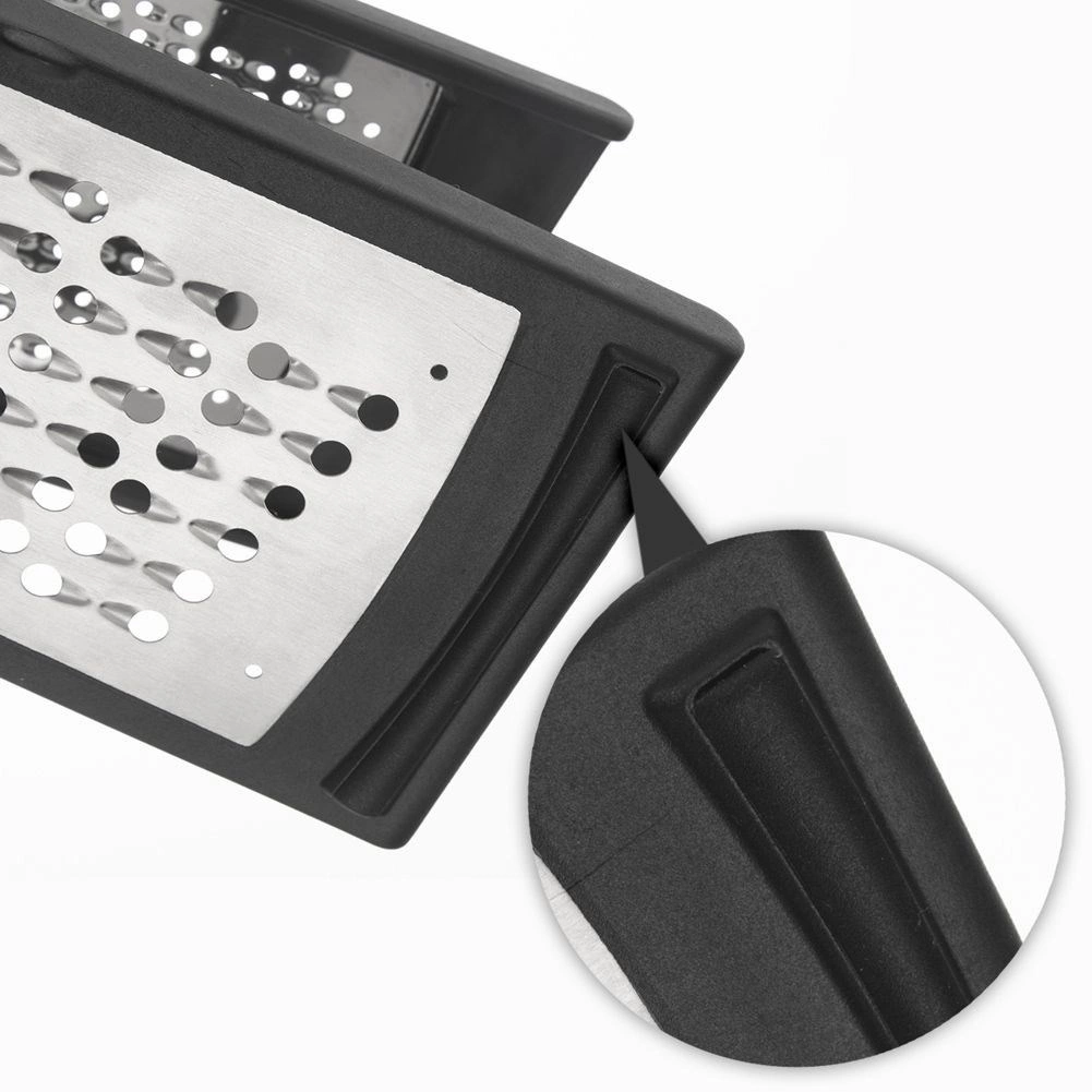 Răzătoarea universală de bucătărie cu recipient transparent detașabil simplifică pregătirea ingredientelor și păstrează blatul curat. Cele două suprafețe de răzuire diferite permit rezultate perfecte la răzuirea legumelor, fructelor, brânzeturilor, ciocolatei și condimentelor. Capetele antiderapante stabile împiedică alunecarea în timpul utilizării.
