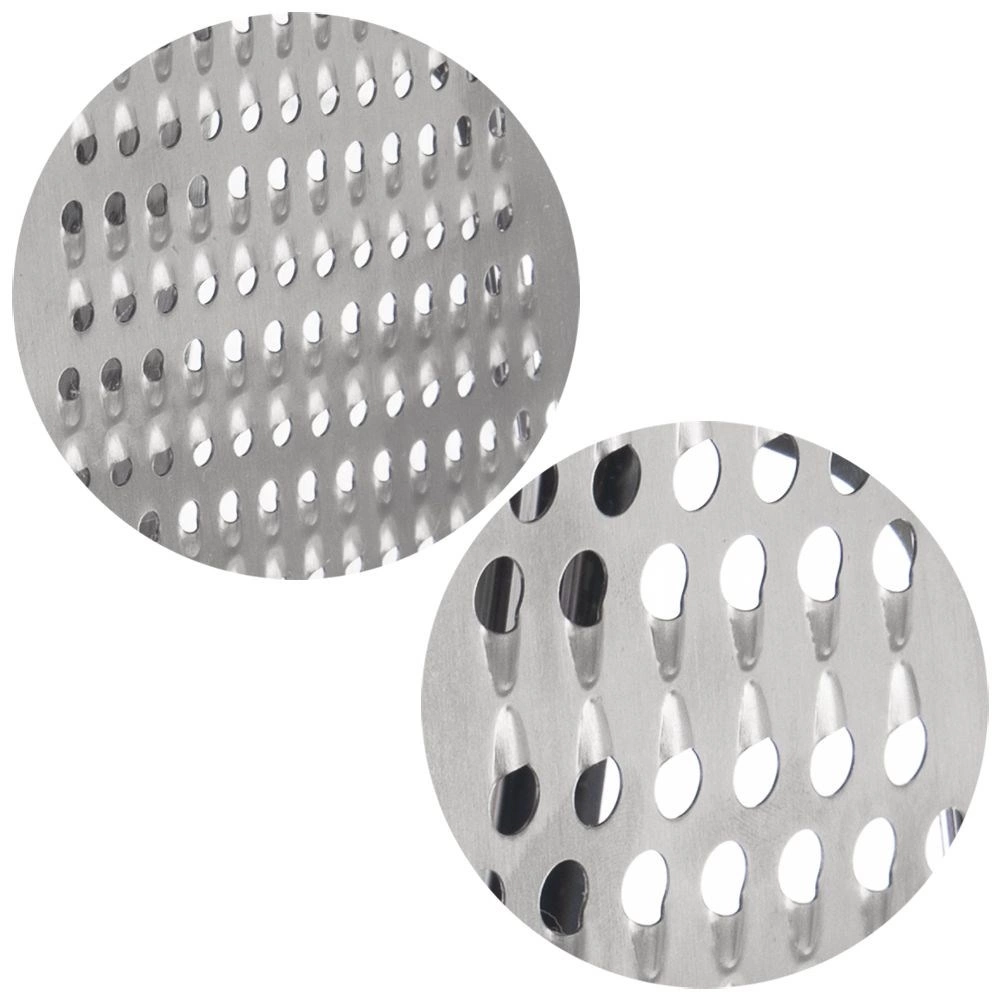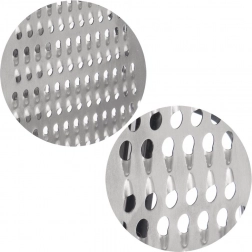 Partea fină de 2 mm și cea grosieră de 6 mm fac față legumelor, fructelor, brânzeturilor și ciocolatei – de la fulgi fini la bucăți mai mari.