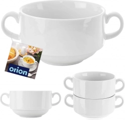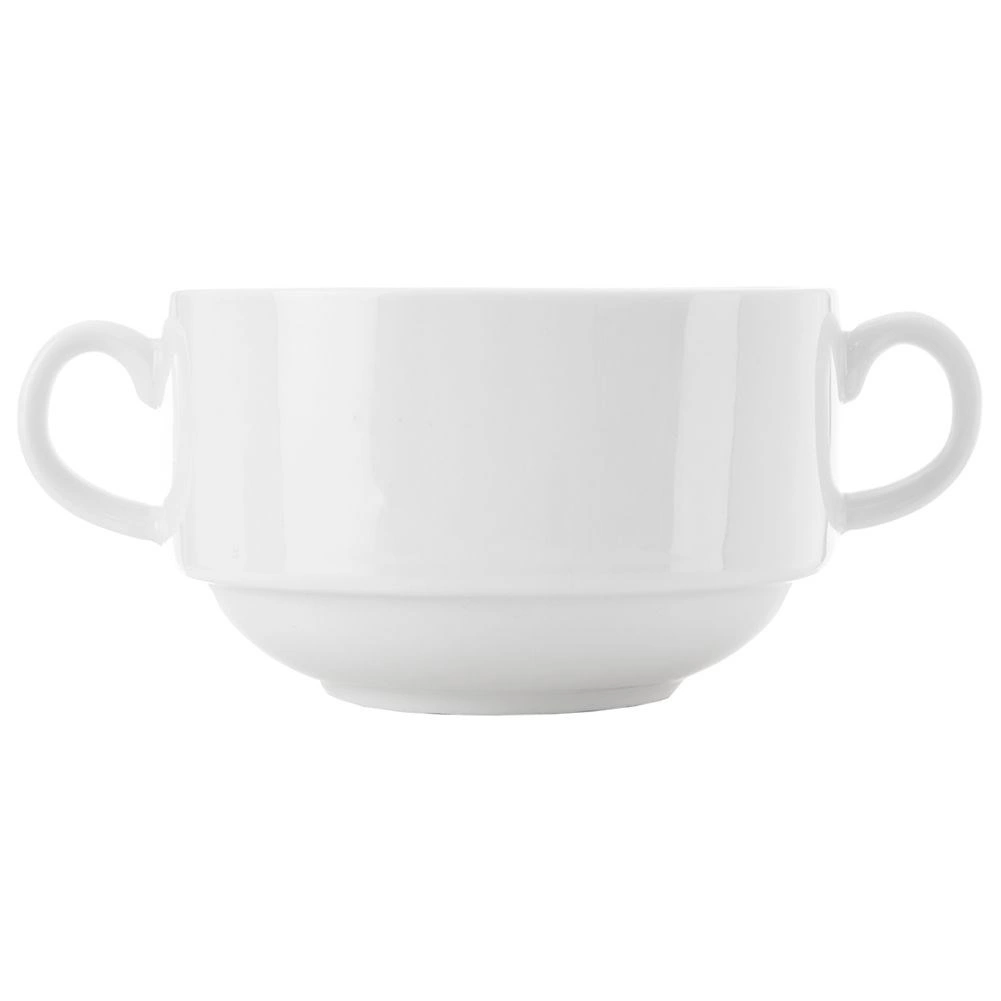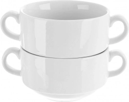 Bolul elegant pentru bulion MONA, cu capacitate de 290 ml, este ideal pentru servirea supelor, consomé-urilor și cremelor. Fabricat din porțelan de calitate de culoare albă, cu două mânere pentru o prindere sigură. Datorită utilizării universale, îl veți aprecia și pentru cereale, iaurt, fructe sau gustări. Este potrivit pentru mașina de spălat vase și cuptorul cu microunde și completează frumos vesela de pe masa dvs.