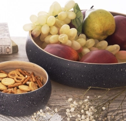 Acest bol stilat din bambus combină aspectul natural al lemnului deschis cu un exterior gri pătat modern. Datorită volumului de 4 l și formei late, joase, este perfect pentru servirea zilnică a salatelor, fructelor, gustărilor și a mâncărurilor calde până la 40 °C.