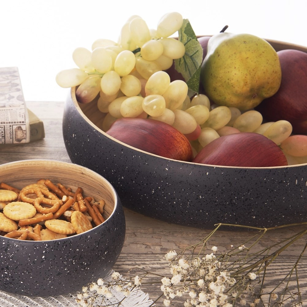 Lemnul de bambus prelucrat manual se remarcă prin construcție ușoară, suprafață netedă și fibra naturală. Bolul este nu doar funcțional, ci și un accesoriu decorativ pentru bucătărie sau dining – excelent și ca fructieră pe blatul de lucru.