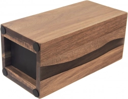 Corpul din lemn de salcâm este completat de o rășină decorativă ce amintește de linia unui râu. Fiecare piesă este unică și funcționează ca un element de design al bucătăriei.