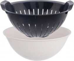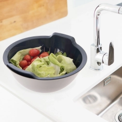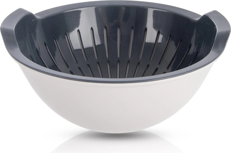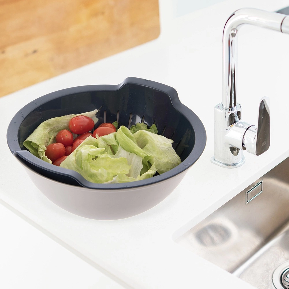 Ambele piese pot fi folosite împreună sau separat: strecurătoarea pentru scurgerea pastelor, cartofilor sau clătirea salatelor și fructelor, bolul pentru amestecarea aluatului de clătite, pregătirea salatelor sau servire. Materialul fără BPA este rezistent până la +95 °C, se curăță ușor în mașina de spălat vase, iar bolul este potrivit și pentru microunde.