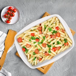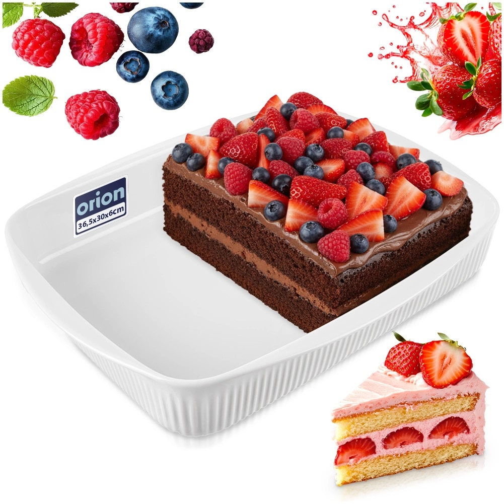 Fabricată din porțelan de calitate pentru durabilitate și utilizare zilnică. Două mânere integrate permit transportul în siguranță – la manipularea vaselor fierbinți se recomandă folosirea mănușilor de bucătărie. Tava poate fi folosită fără griji în diferite tipuri de cuptoare, în cuptorul cu microunde și apoi spălată în mașina de spălat vase.