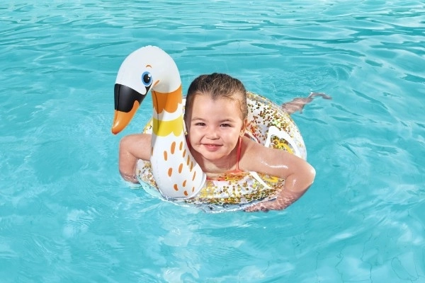Motivul atractiv de lebădă cu efect sclipitor îi motivează pe copii la jocuri în apă și prelungește timpul petrecut activ în aer liber.