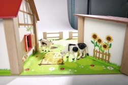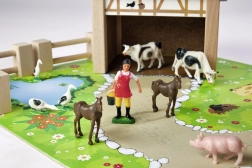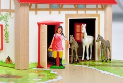 Grajdul mare cu staul, porți care se deschid și țarcuri creează un mediu autentic. Copiii pot hrăni animalele, le pot duce în țarcuri și pot organiza viața la fermă.