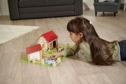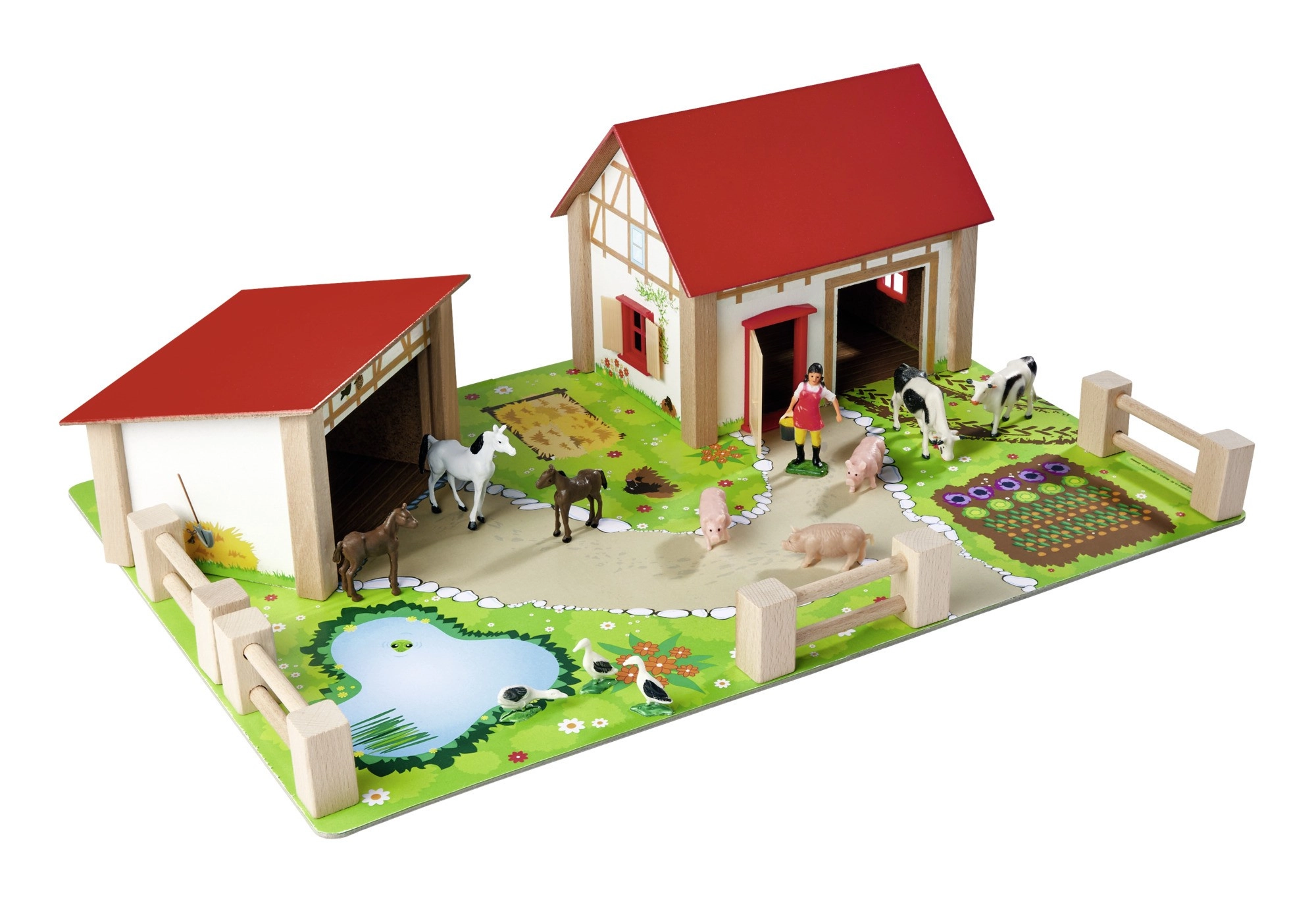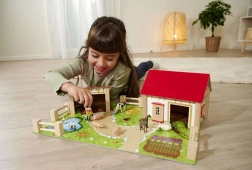 Copiii devin mici fermieri: mută animăluțele în țarcuri, deschid ușile staulului și îngrijesc grădinița. Ferma din lemn EICHHORN se remarcă prin calitatea execuției, culori plăcute și materiale sigure pentru o joacă plină de bucurie și de lungă durată.
