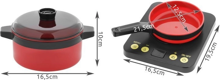 Acest set versatil pentru micii bucătari imită excelent ustensilele și electrocasnicele reale de bucătărie. Datorită selecției gândite de piese, copiii pot învăța cum să pregătească „bunătăți” și, în același timp, să își dezvolte motricitatea fină, imaginația și cooperarea în jocul împreună cu părinții sau frații. Combinația elegantă de negru, gri și roșu intens are un aspect modern și este potrivită atât pentru fete, cât și pentru băieți.