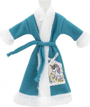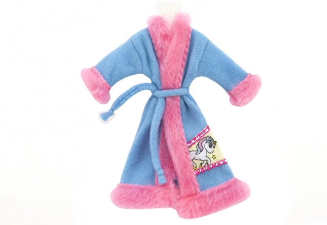 Halat stilat pentru păpuși, cu suprafață catifelată și curea de legare, care încălzește după baie și în timpul rutinelor de seară. Disponibil în mix de culori și motive (ex. unicorn), se combină ușor cu alte hăinuțe.
