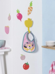 Alege între modelul cu legume și iepuraș și carouri roz cu ursuleț bucătar – ideale pentru alternare în timpul jocului și hrănirii.