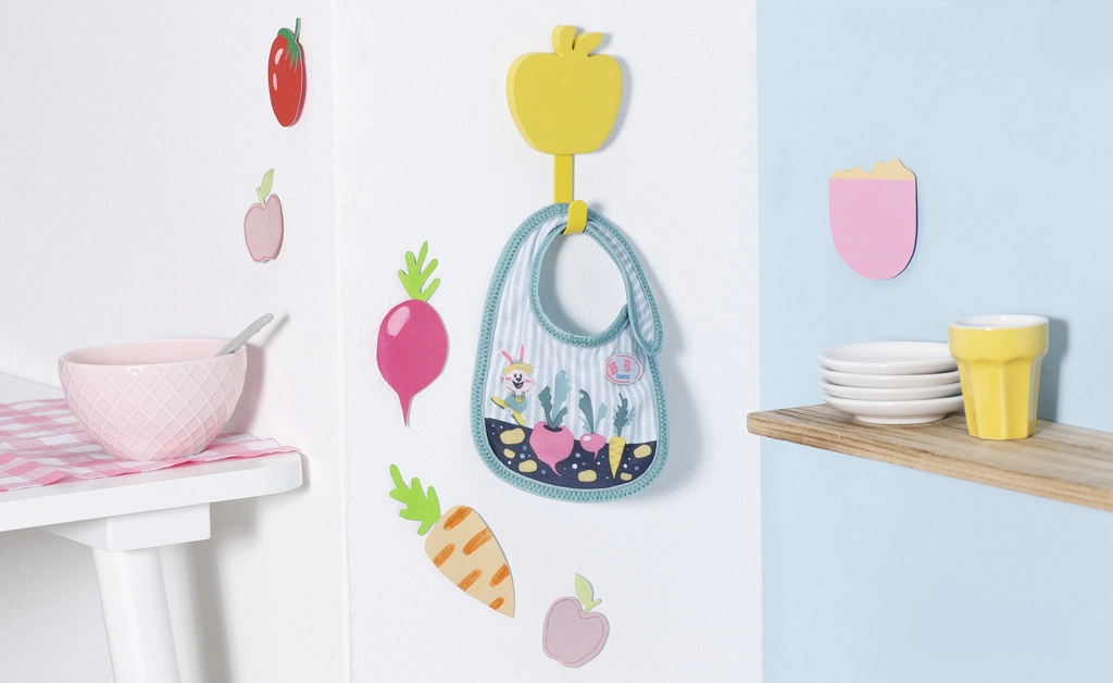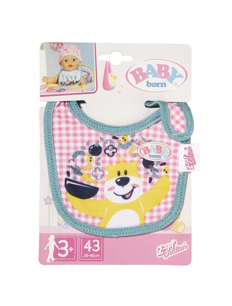 Completează trusoul păpușii tale cu o bavețică stilată pentru BABY born 43 cm. Două designuri diferite vor încânta micile îngrijitoare: unul cu legume vesele și iepuraș, celălalt cu ursuleț bucătar adorabil. Bavetele sunt fine, confortabile și protejează hăinuțele păpușii la hrănire.