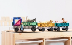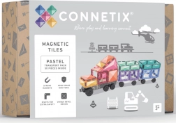 Setul pastel CONNETIX Transport Pack aduce 50 de piese transparente și durabile, cu magneți neodim puternici și trei șasiuri cu roți. Copiii construiesc cu ușurință mașini, trenuri sau mașinării futuriste, familiarizându-se natural cu geometria 2D/3D, simetria și principiile fizicii (echilibru, stabilitate, cauză–efect). Piesele se conectează sigur din toate direcțiile, iar „click”-ul la îmbinare îi motivează la noi încercări.