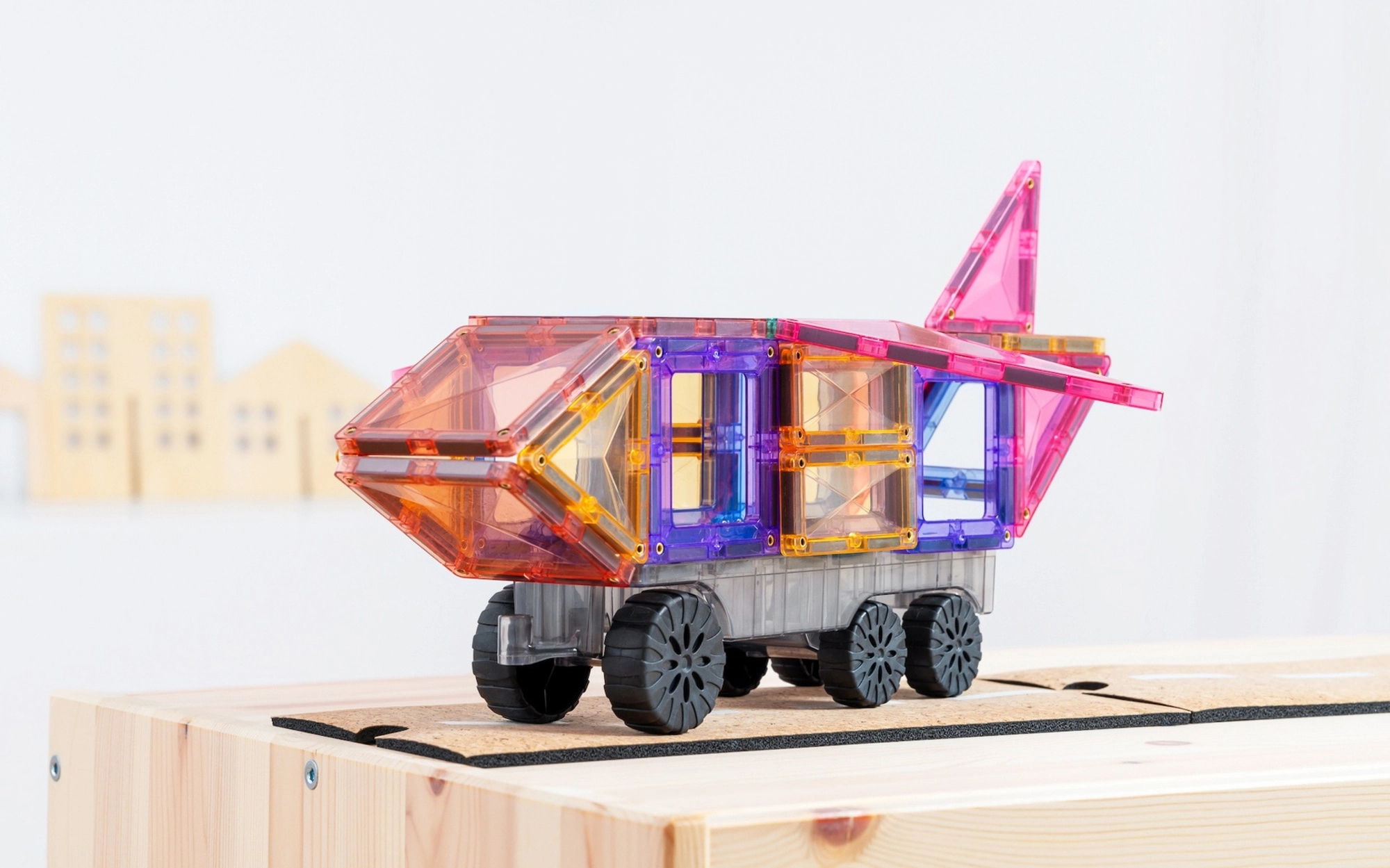 Magnetii se atrag din toate părțile și creează modele 3D solide. „Click”-ul la conectare motivează noi experimente și sporește siguranța în construcție.