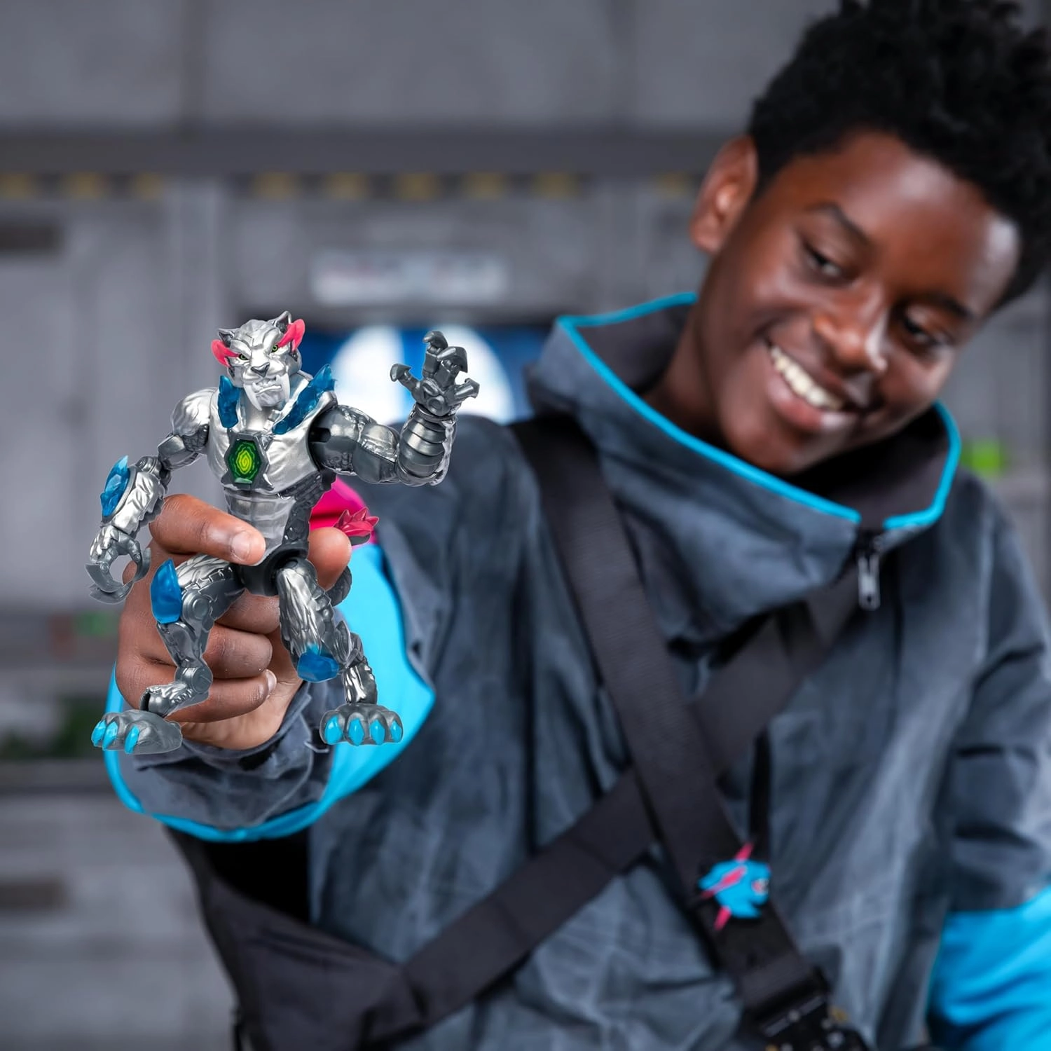 Trăiește experimentul științific în stil MRBEAST: umple containerul cu lichid, agită și privește cum se dezvăluie felina metalică futuristă – Metallic Panther. Figurina arată ca un prădător mecanic cu suprafață metalică, accente albastre și nucleu verde pe piept.