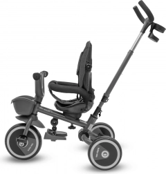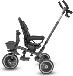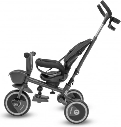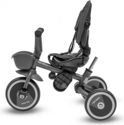 Siguranța și mersul lin sunt garantate de centurile de siguranță în 5 puncte, funcția roată liberă pentru pedalare liberă, roțile din spumă EVA care absorb șocurile și frânele de picior pe roțile din spate. Echiparea practică include copertină mare pliabilă cu fereastră, suport pentru băuturi și coș pentru jucării.