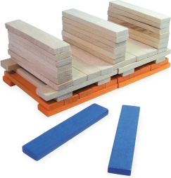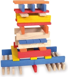 Setul conține 100 de plăcuțe solide, netede, în culori naturale și intense – ideale pentru turnuri, căsuțe și construcții originale.