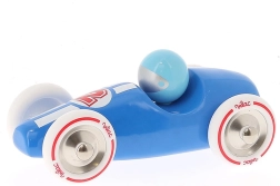 Mașina de curse albastră Vilac se remarcă prin designul retro curat, execuția precisă și materialele rezistente. Lemnul lăcuit este plăcut la atingere și ușor de întreținut, iar elementele metalice și roțile cauciucate asigură o deplasare lină și silențioasă pe diferite suprafețe. Joaca cu mașinuța sprijină coordonarea mână–ochi, dezvoltă imaginația și capacitatea de concentrare.