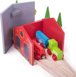 Depozitul este fabricat din materiale naturale de calitate, obținute responsabil, și respectă normele europene actuale de siguranță. Este pe deplin compatibil cu alte căi ferate din lemn de pe piață, astfel încât îl veți integra cu ușurință în orice set. Jocul cu depozitul dezvoltă imaginația, motricitatea fină și coordonarea.