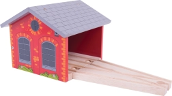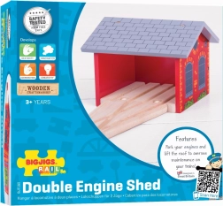 Extindeți-vă traseul feroviar cu un depozit stilat din cărămidă, în care puteți parca confortabil până la două trenulețe. Datorită șinei de intrare incluse, conectați ușor depozitul la linia existentă și creați o bază realistă pentru odihnă, întreținere sau alimentarea garniturilor. Construcția robustă din lemn și designul atemporal asigură durabilitate îndelungată și joc sigur.