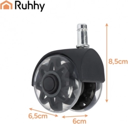 Roțile RUHHY aduc confort și siguranță pentru podeaua și scaunul dvs. Datorită suprafeței din PU moale, rulează lin pe panouri, parchet, gresie și mochetă, fără a lăsa zgârieturi. Rulmentul din oțel și construcția întărită asigură durată lungă de viață și fiabilitate în utilizarea de zi cu zi.