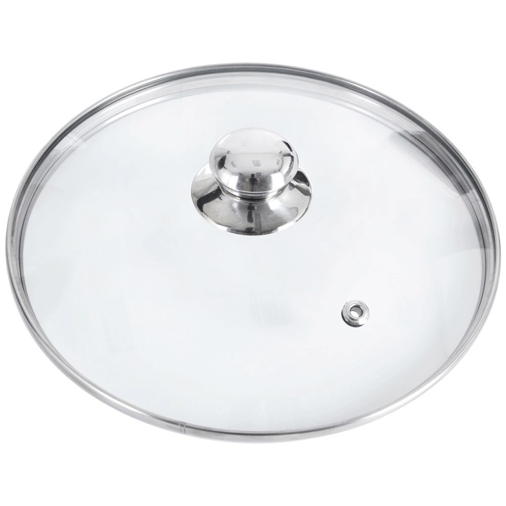 Capacul practic din sticlă de 32 cm este o înlocuire sau completare ideală pentru vasele fără capac. Sticla transparentă cu margină și mâner din inox este rezistentă până la 200 °C, astfel încât îl puteți folosi la gătit zilnic, înăbușire și prăjire.