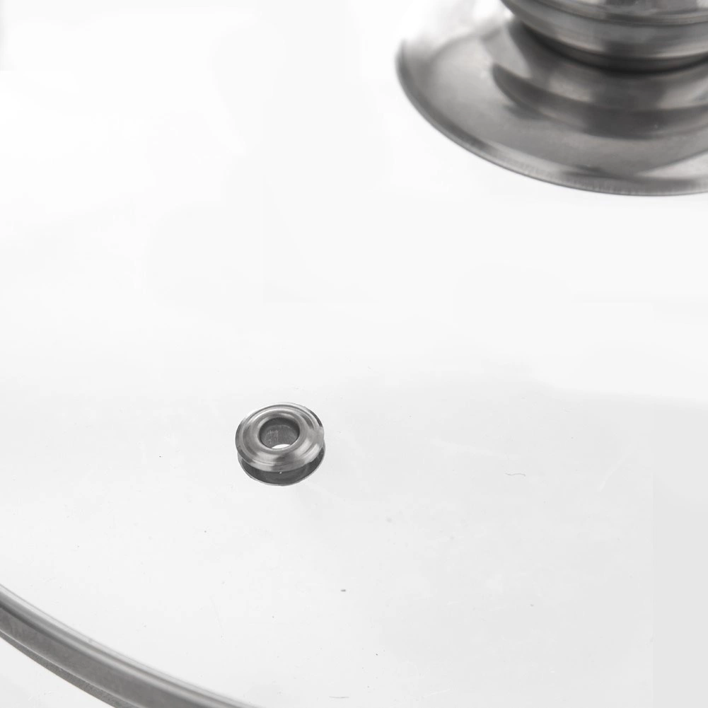 Orificiul pentru abur integrat stabilizează presiunea și reduce riscul de darea în foc. Capacul este ușor bombat, ceea ce îmbunătățește circulația aerului fierbinte și uniformitatea preparării. Marginea antiderapantă ajută la o așezare sigură și etanșă pe oală sau tigaie.