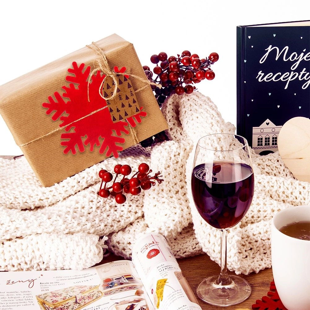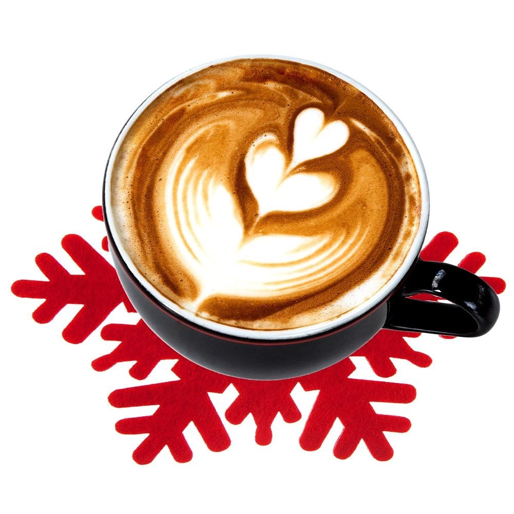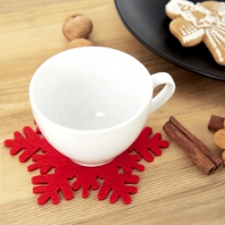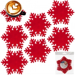 Suporturile roșii în formă de fulg de zăpadă creează instant o atmosferă festivă și completează aranjarea mesei în timpul iernii și de Crăciun.