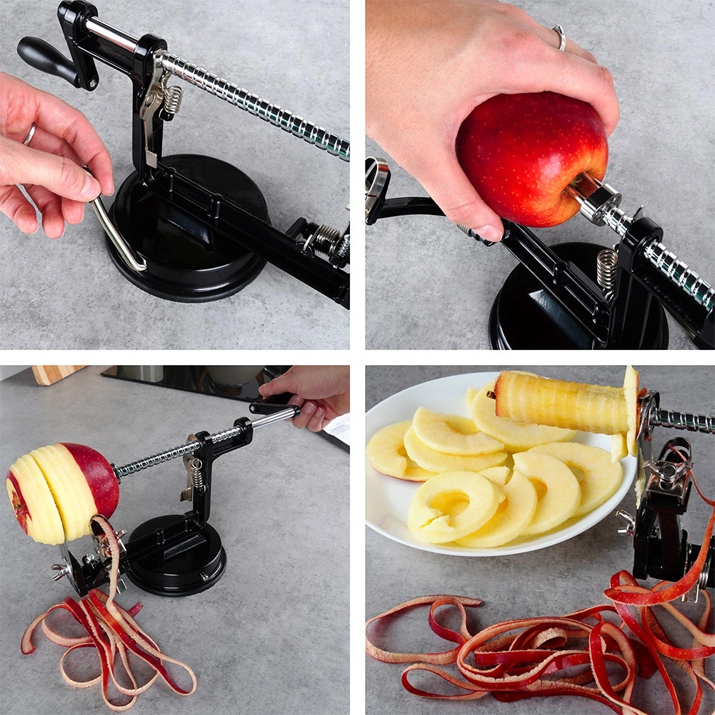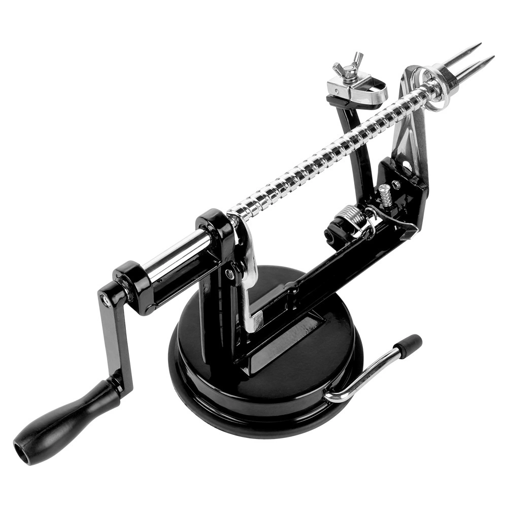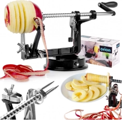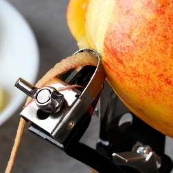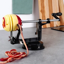Un ajutor practic în bucătărie, care într-o singură operațiune decojește, îndepărtează cotorul și taie merele, perele sau cartofii în spirale atrăgătoare. Datorită ghidajului precis și lamelor ascuțite obțineți felii uniforme, ideale pentru ștrudele, chipsuri crocante, deshidratare sau servire decorativă.