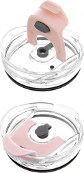 Capacul transparent cu garnitură are o deschidere închisă pentru băut și o deschidere separată pentru paiul metalic, cu dop din silicon.