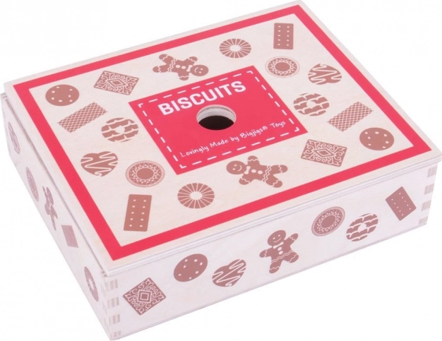 Prezentăm cutia de lemn cu jucării de biscuiți, care conține un sortiment de biscuiți preferați, inclusiv turtă dulce și multe altele. Acest set permite copiilor mici să-și dezvolte creativitatea prin joc inspirat de coacere.