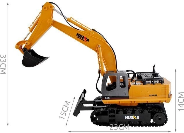 Vehiculul se caracterizează prin o precizie ridicată, o calitate înaltă a suprafeței și o reproducere perfectă a adevăratului excavator la scara de 1:16. Are tracțiune integrală și este echipat cu lumini LED.
