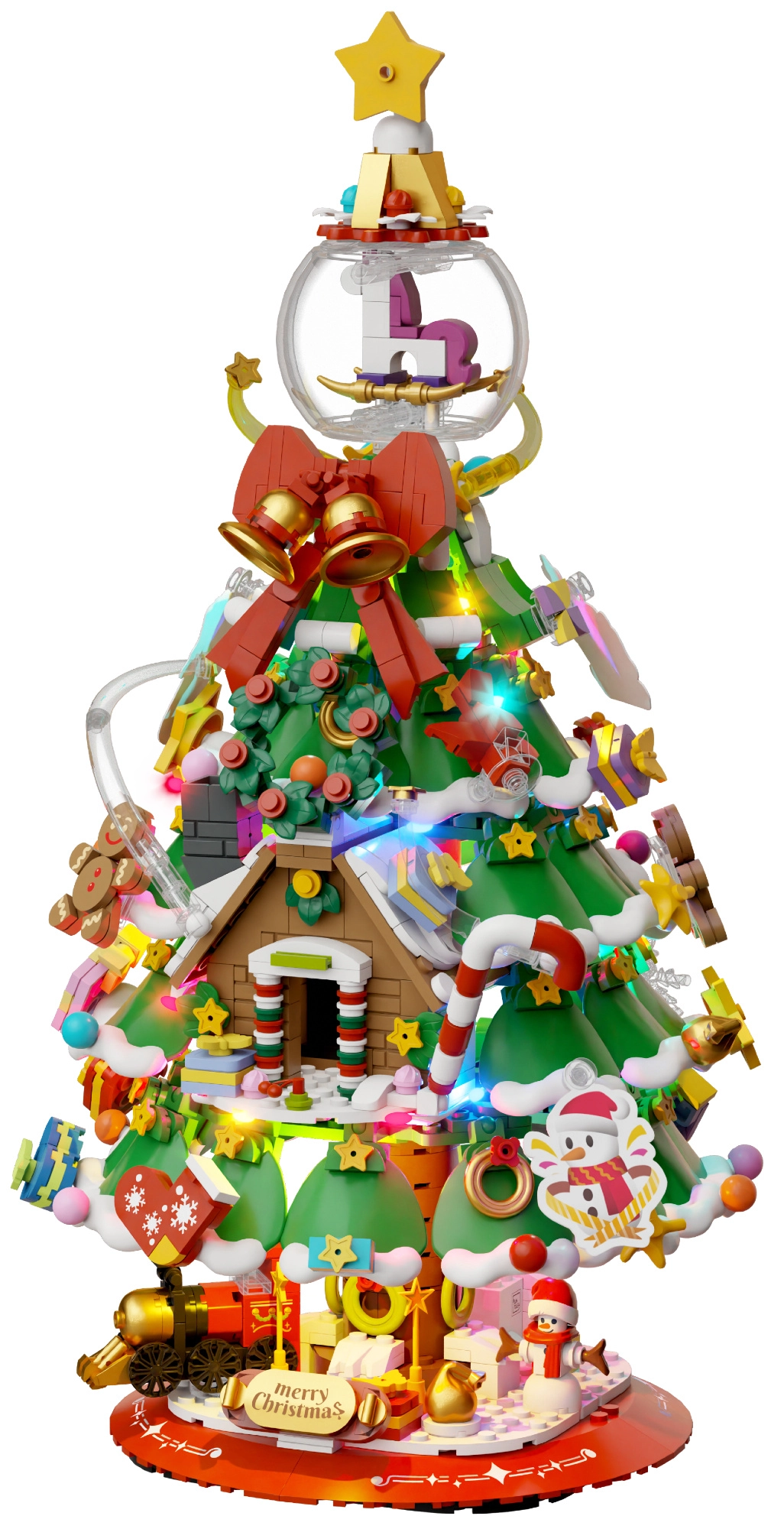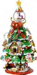 Acest brăduț elegant din piese va deveni punctul de atracție pe masa festivă sau în living. Nu îi lipsesc detalii fermecătoare precum un mini-trenuleț, un om de zăpadă, o căsuță din turtă dulce, clopoței și un omuleț din turtă dulce. În vârf strălucește o bilă de cristal cu un căluț balansoar, inclusiv un capac transparent pentru protecție și un aspect de efect.