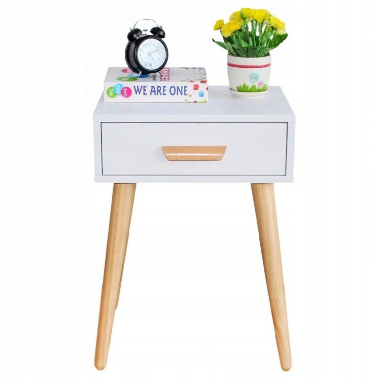 Blatul din PAL laminat este rezistent la zgârieturi și pătare, iar picioarele din pin masiv asigură stabilitate excelentă. Sertarul integrat păstrează totul la îndemână – de la carte și telefon până la ochelari sau mici cosmetice.