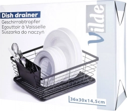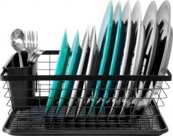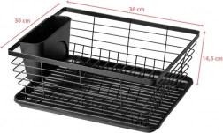 Un scurgător elegant din metal inoxidabil rezistent, în negru universal, se potrivește perfect în orice bucătărie – de la clasică la modernă sau industrială. Dispunerea atent gândită oferă sloturi pentru farfurii, spațiu pentru căni și un suport de tacâmuri detașabil, ce poate fi plasat atât la interior, cât și la exterior.