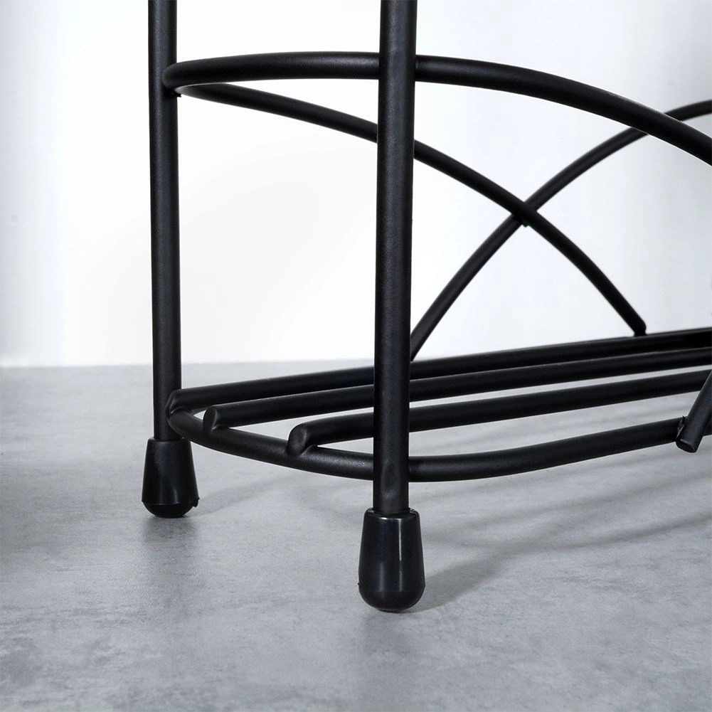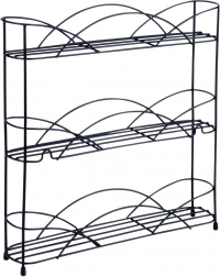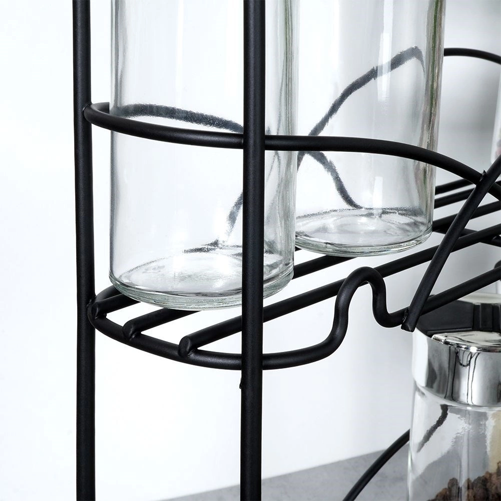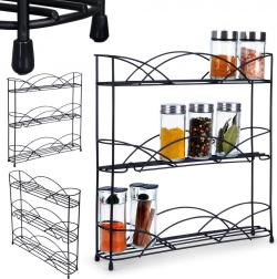 Organizează condimentele clar și mereu la îndemână. Suportul metalic cu trei niveluri, în culoare neagră, oferă o soluție inteligentă pentru bucătărie și baie. Pe cele trei rafturi poți depozita cu ușurință borcănașe cu condimente, uleiuri, asezonări sau mici accesorii. Construcția stabilă, cu capete din cauciuc la picioare, protejează blatul și previne alunecarea.