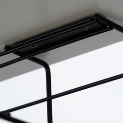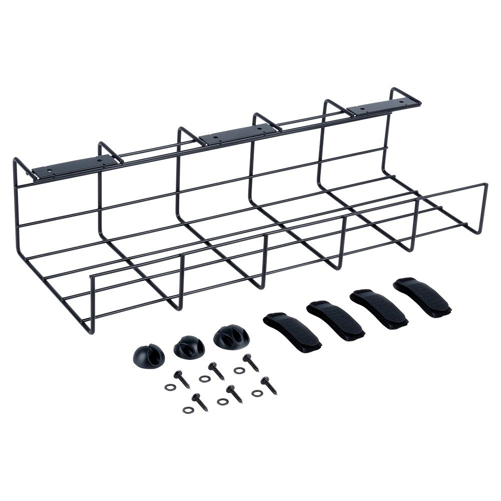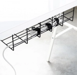Coșul pentru cabluri montat sub birou păstrează cablurile ascunse, departe de podea și departe de copii sau animale de companie. Construcția deschisă din sârmă asigură circulație liberă a aerului pentru adaptoare și acces rapid atunci când adăugați sau schimbați dispozitive.