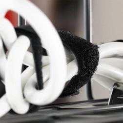 Instalare ușoară cu accesoriile incluse: șuruburi cu șaibe, benzi cu scai și cleme autoadezive pentru ghidarea cablurilor pe blat. Veți crea rapid un spațiu de lucru ordonat și sigur, fără aglomerație sub picioare.