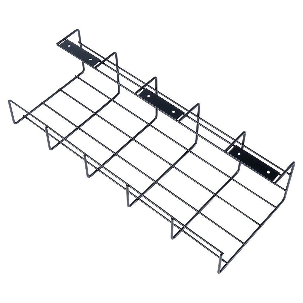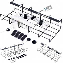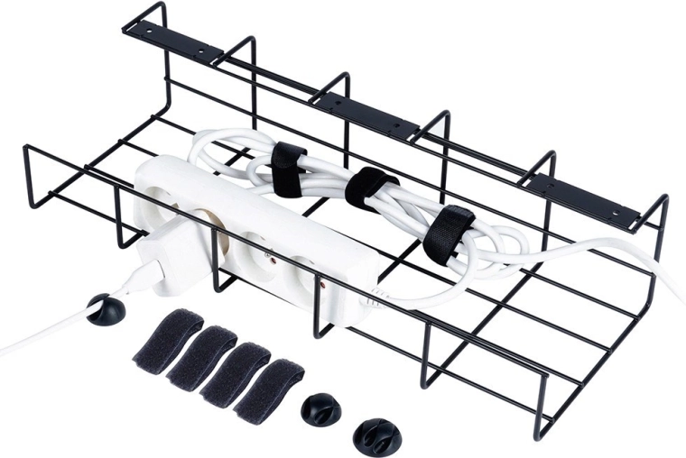 Datorită dimensiunilor universale de 43 × 17 × 10 cm, se potrivește ușor sub majoritatea birourilor și rafturilor. Metalul vopsit în câmp electrostatic în culoare neagră este rezistent la zgârieturi și se potrivește perfect interioarelor moderne. Coșul este ideal pentru depozitarea prelungitoarelor, surselor de alimentare și a cablurilor în exces, fără răsuciri și încurcături.
