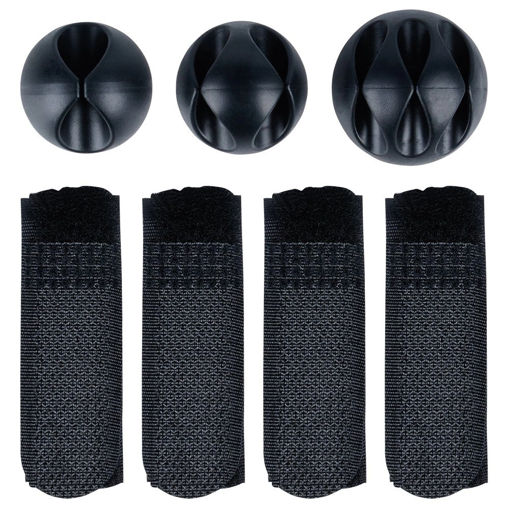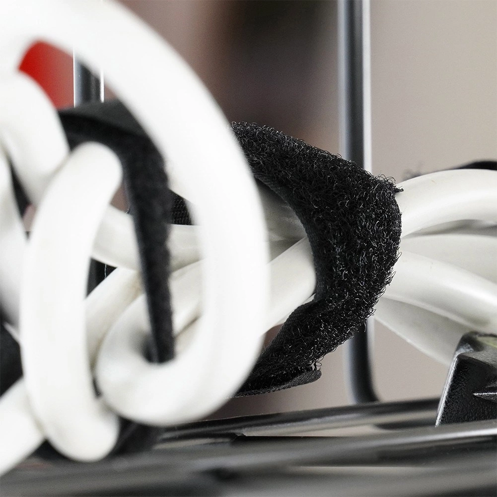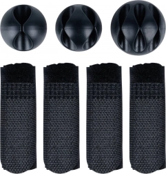 Sunt incluse șuruburi cu șaibe, benzi cu scai și cleme autoadezive – pentru fixarea fermă a coșului și o rutare elegantă a cablurilor.