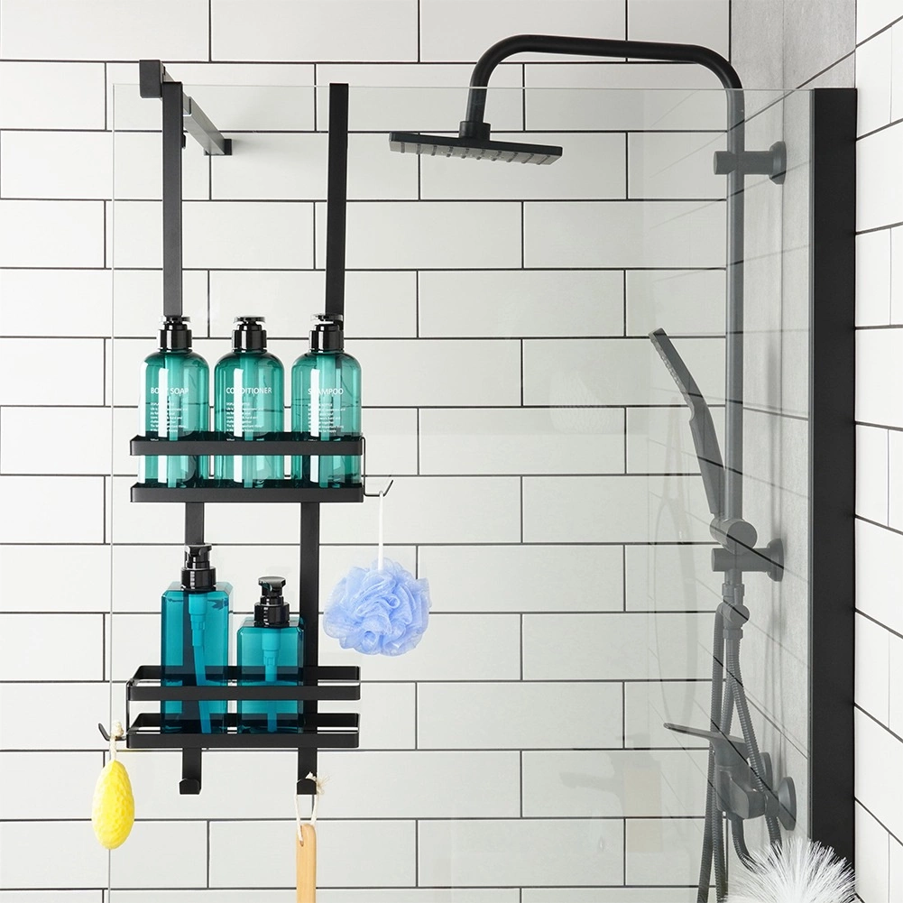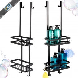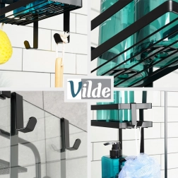 Păstrați cabina de duș ordonată și stilată. Raftul suspendat, în design loft industrial, oferă două niveluri de depozitare pentru șampoane, balsamuri și săpunuri, iar patru cârlige practice sunt ideale pentru bureți, perii sau aparate de ras. Metalul vopsit în câmp electrostatic, de culoare neagră, este solid și rezistent la coroziune, fiind perfect pentru utilizarea zilnică.