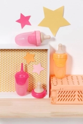 Pentru păpușile BABY born, această sticlă cu capac este un complement excelent care asigură ore întregi de joacă distractivă. Capacului biberonului este proiectat ca o suzetă și, după îndepărtarea capacului, dezvăluie un vârf pentru băut, care permite hrănirea ușoară a păpușii.