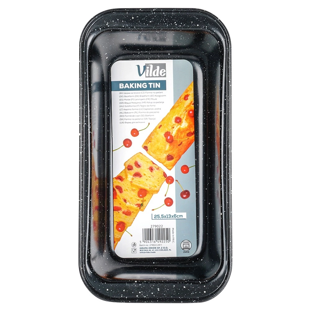 Această formă dreptunghiulară din oțel carbon de calitate, cu strat antiaderent din granit, este ideală pentru coacerea acasă a pâinii, biscuiților, checurilor și pateurilor. Materialul asigură încălzire rapidă și uniformă, astfel încât preparatele dvs. vor fi mereu frumos și uniform coapte.