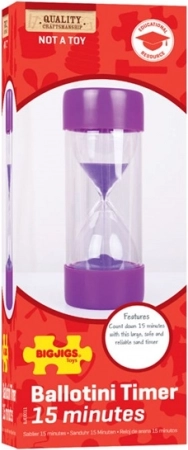 Clepsidra mare Bigjigs Toys este un ajutor perfect pentru determinarea duratei activităților precum învățarea sau curățenia. Recipientul interior cu nisip este din sticlă și este protejat de un înveliș de plastic rezistent. Îndeplinește normele de siguranță europene actuale.