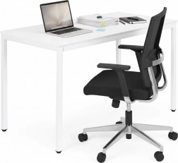 Blatul din MDF cu melamină este rezistent la zgârieturi și ușor de curățat. Picioarele metalice vopsite în câmp electrostatic sporesc rezistența și durabilitatea.