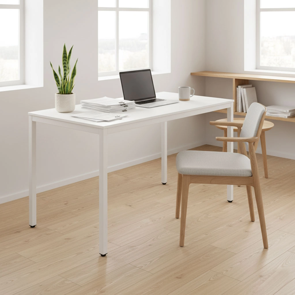 Căutați o masă care să facă față atât meselor zilnice, cât și muncii? Această masă albă de la ModernHome combină un aspect curat, materiale durabile și dimensiuni practice. Blatul de 120 × 60 cm oferă suficient spațiu pentru prânzuri în familie, învățat și lucru la laptop.